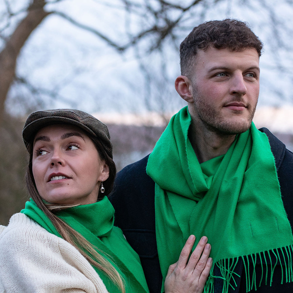 Foxford Green, Turquoise & Cream Tartan Lambswool Scarf