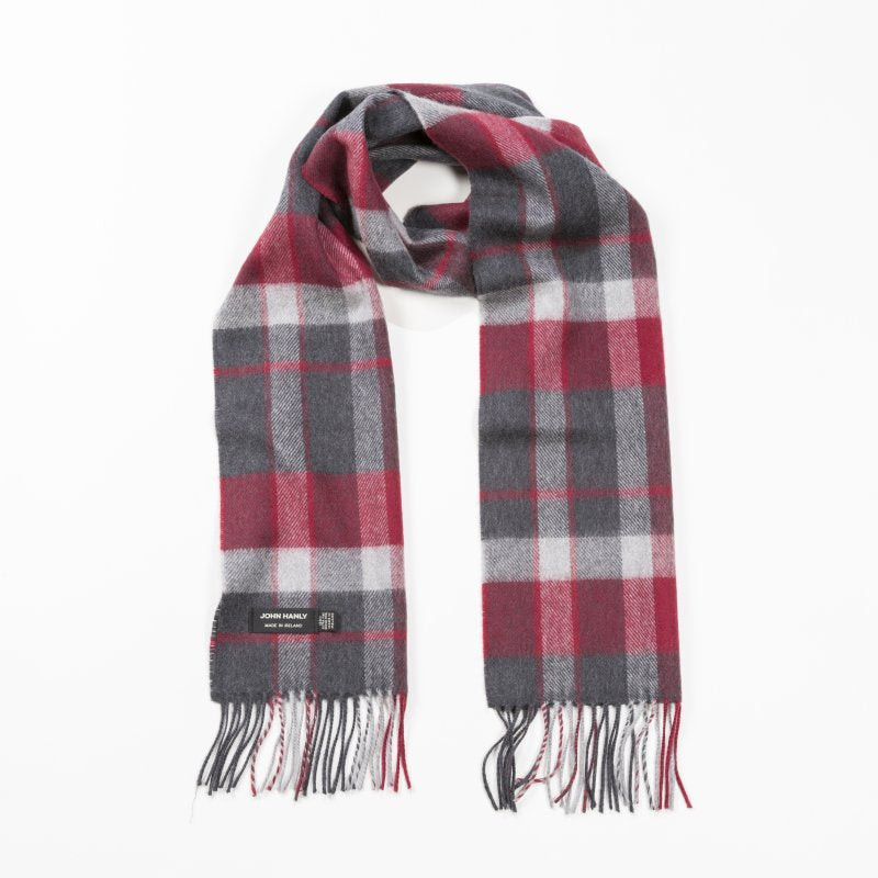 Merino Luxury Wool Scarf Charcoal Silver Red Check. A vibrant and stylist collection that provides a beautiful colour, and is incredibly soft to the touch.